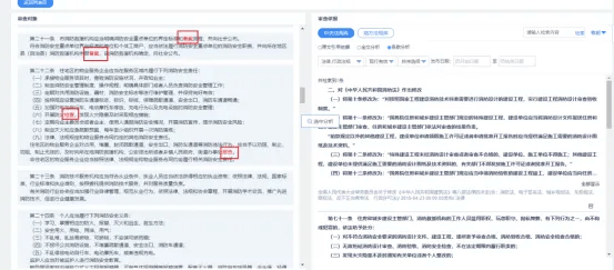 法规重复性审查:基于法律法规文本向量化技术,运用深度神经网络算法,支持40万余部中央法规与200万余部地方法规的实时比对查重,实现立法文本与现行法规的句子级重复率计算,输出查重报告为立法人员提供参考,有效保障立法文本的合规性和独创性的统一。