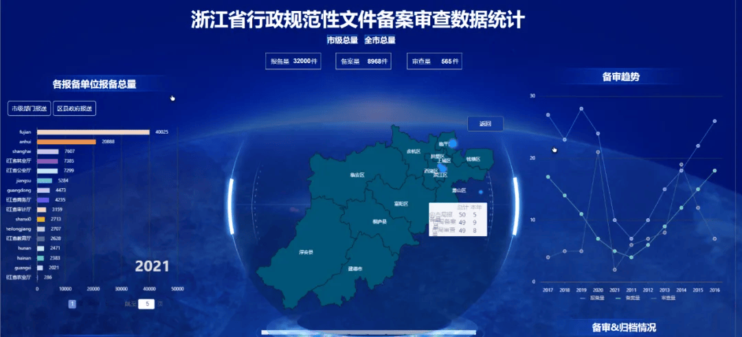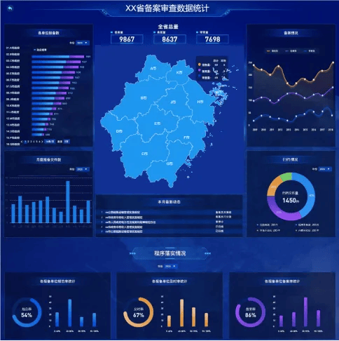 无论是追踪各单位年度报备量、评估行政区域内的报备活跃度,还是分析行政区域内的报备量、备案量、审查量、备案趋势,平台都能提供深入的数据洞察。此外,它还能展示各报备单位的规范率、及时率和备案率等情况,为进一步决策提供详实的数据参考。
