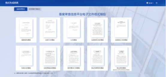 格式生成系统基于《全国人规备案审查信息平台电子文件格式规范(试行)》的规定制作标准格式模板。用户只需输入相应内容,系统便能一键生成符合上述法规要求的电子文件。这一创新工具不仅确保了文件格式的规范性,也极大提高了文件处理的效率和准确性,是法规备案和文件格式处理的得力助手。