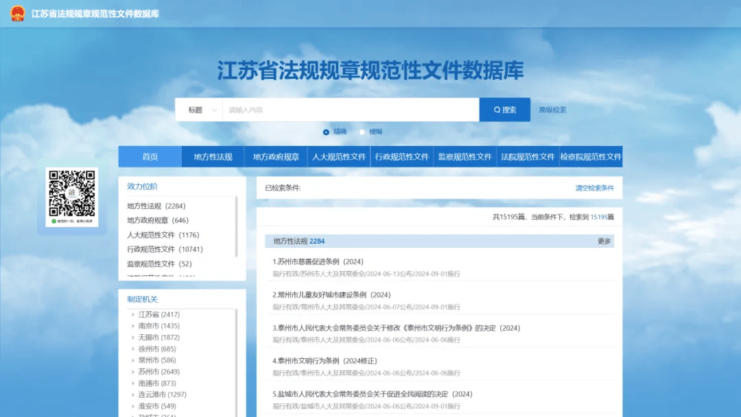 构建涵盖地方性法规、政府规章、各级政府及其所属部门行政规范性文件、各级人大及其常委会决议决定、各级监委、法院、检察院规范性文件的省级法规规章规范性文件数据库,面向社会公众全面开放,满足查询、检索、下载、意见反馈、清理更新以及与国家法律法规库的数据共享等功能,为社会公众使用提供便利。