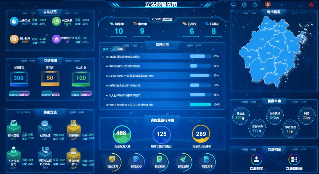 了一套适合人大立法的智能应用解决方案,为人大立法的核心工作和业务流程赋能。智慧人大立法解决方案涵盖智能立法辅助工具、意见征集系统、备案审查信息平台、法规规章规范性文件数据库、立法数智综合应用平台、基层立法联系点服务工作平台在内的