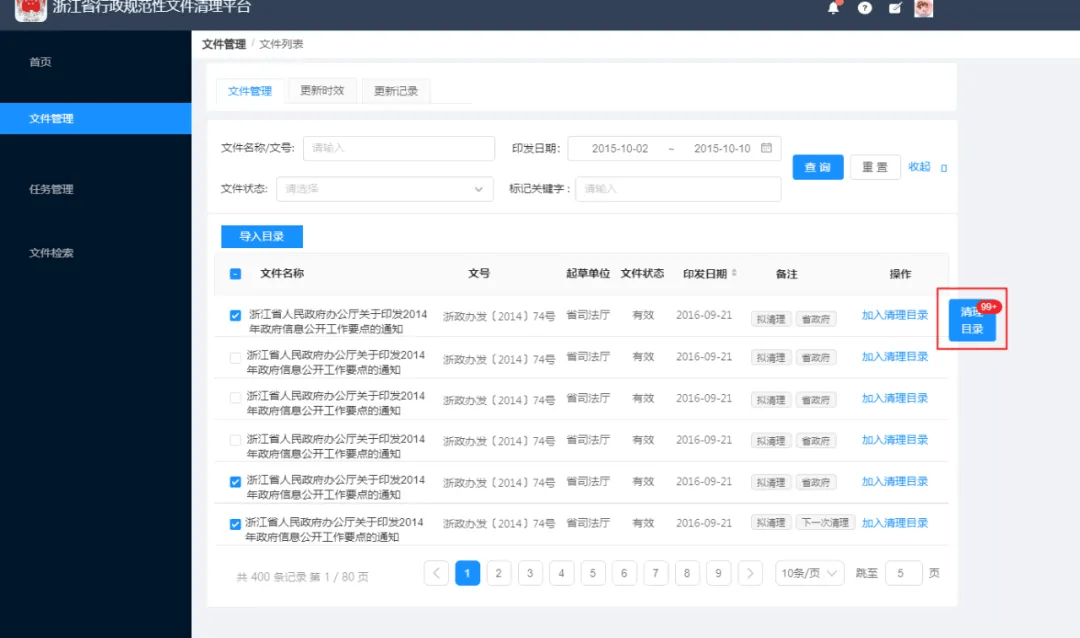 根据规范性文件管理的需要,跟踪文件清理全流程。设置了相应流程及功能,针对部门内部文件清理与跨部门文件清理的不同需求,满足了用户对应模式下选择不同的流程和功能,明确了清理流程。留存了过程资料,提升了清理及时性和效率。